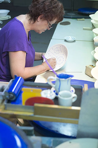 Handwerkskunst: Blau Saks wird nach wie vor von Hand gemalt